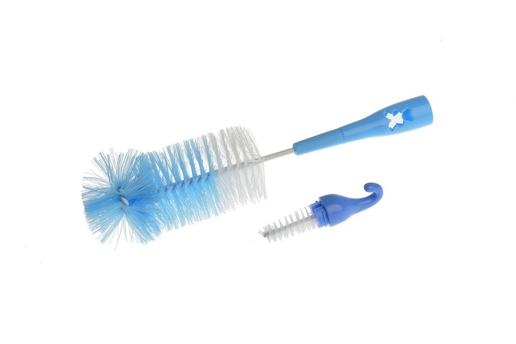 Komplet posebej oblikovanih krtač (velika in majhna) za čiščenje steklenic in cucljev. Uporaba omogoča natančno odstranjevanje umazanije tudi na težko dostopnih mestih. Izdelane so iz varnih materialov. Na voljo v treh barvah: zelena, modra in roza.