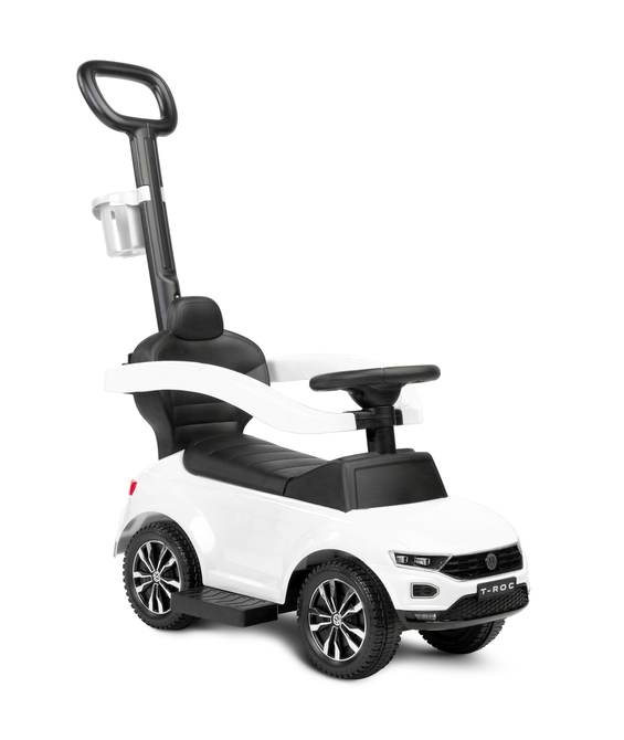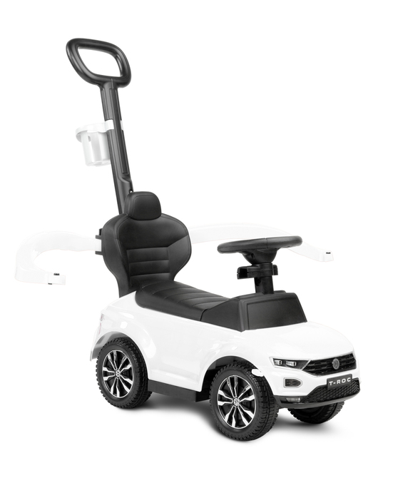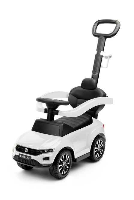 Otroški potisni avto VW T-Roc iz Toyza je otroška igrača na potisk. Zahvaljujoč licenci Volkswagen je agresivna narava pravega SUV-ja zvesto reproducirana. Potisni avto je popoln za skupne sprehode. Otrok se lahko premika samostojno, ko pa je utrujen, lahko starš enostavno prevzame nadzor nad vozilom. Zložljive platforme omogočajo varno oporo za noge, ograja pa ščiti pred padcem. Pod sedežem je predal za igrače. Na ročaju je držalo za skodelico.