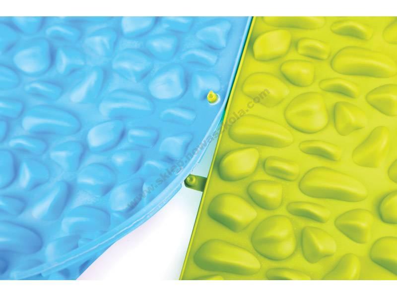 Senzorična pot s teksturo v obliki majhnih nepravilnih kamenčkov. Dvobarvne, prožne in lahke plošče, ki jih je mogoče preprosto povezati zahvaljujoč luknjam in zaskočnim zakovicam na robovih vsakega elementa. Set otrokom omogoča razvoj senzorične integracije, masira stopala in pomaga pri korekciji ploskih stopal. Specifikacija izdelka: 10 kosov: 5 zelenih elementov, 5 modrih elementov dim. plošče: 39 x 29 cm material: termoplastična guma – TPR starost: 3+.