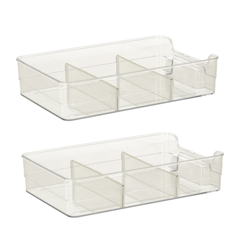 - Material: plastika Velikost posamezne posode: plastika: Velikost posode: 28 cm x 18 cm x 6 cm Dimenzije celotnega organizatorja: 29 cm x 20 cm x 29 cm. Dimenzije embalaže: 30,5 cm x 22 cm x 1,5 cm Vrsta embalaže: karton