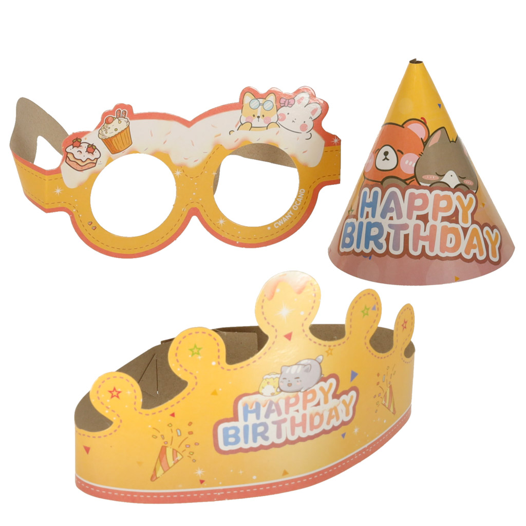 - igrača – interaktivna dvonadstropna rojstnodnevna torta figurice za torto – medvedek in samorog 6 svečk 2 krožnika žlica vilice lopatka za torto papirnati dodatki – kozarci, rojstnodnevni klobuk in krona