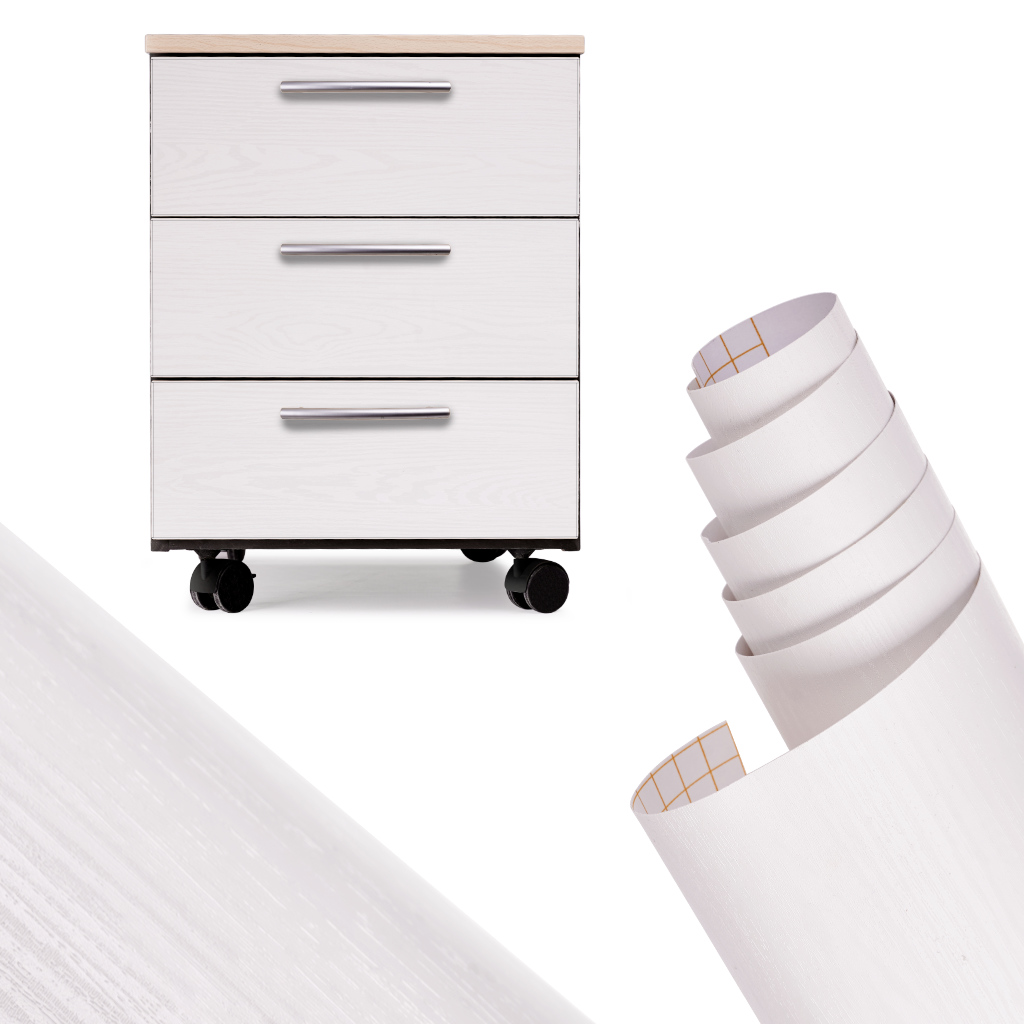 Naša termoplastična samolepilna folija Oak White jedekorativni izdelek. Vašim predmetom bo dala svež videz – oživila jih bo! Odlično vam bo pomagala personalizirati vaš dom in izstopiti iz običajnih vzorcev. Naša furnirska folija je idealen material za cenovno ugodno prikrivanje poškodb in drugih nepravilnosti.