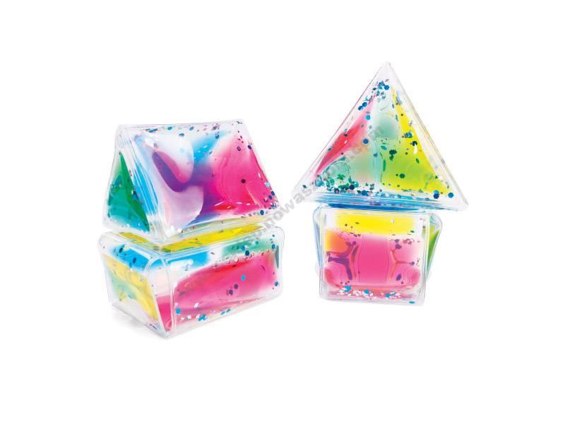Komplet senzoričnih oblik, ki stimulirajo čutilo za vid ali dotik ter služijo kot pomoč pri manipulativnih vajah. Priporočamo kombinacijo z osvetljenimi paneli. Mehki in na dotik prijetni elementi so polnjeni s posebnim gelom z bleščicami, ki ob pritisku ustvari edinstvene vzorce. Vse oblike so opremljene z zapiranjem na ježka, ki omogoča ustvarjanje 3D oblik iz mrež. Ta izdelek se lahko izkaže za uporabnega pri poučevanju geometrije, zlasti v primeru otrok z avtističnim spektrom. Specifikacija izdelka: 4 elementi: kocka, kvader, prizma, pravilni tetraeder dim.: 19 x 26 cm material: plastika starost: 1+