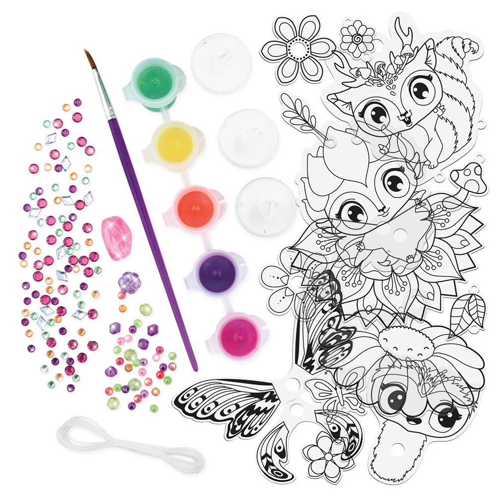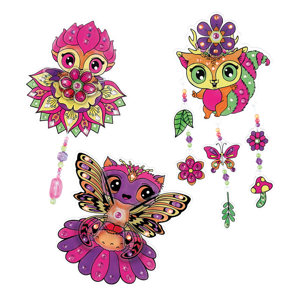 • Pobarvajte predloge, okrasite jih s kristali, sestavite in čarobni okrasek za vašo sobo bo pripravljen.