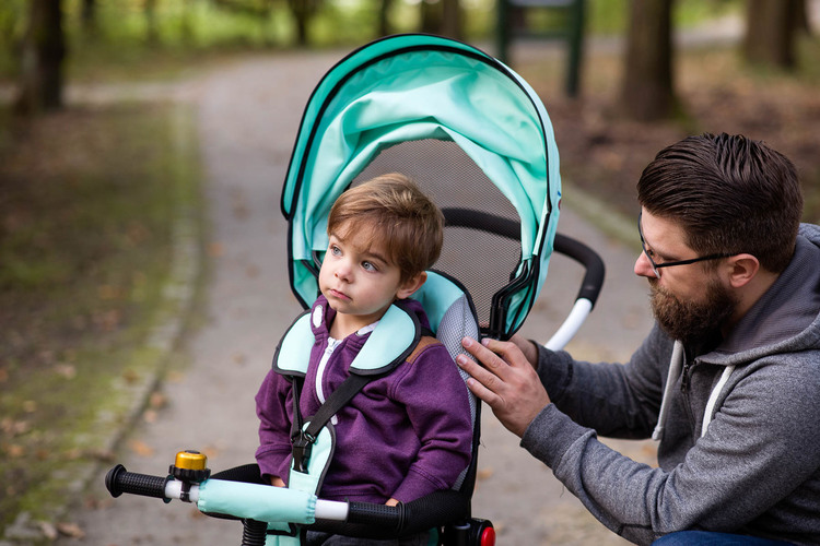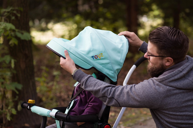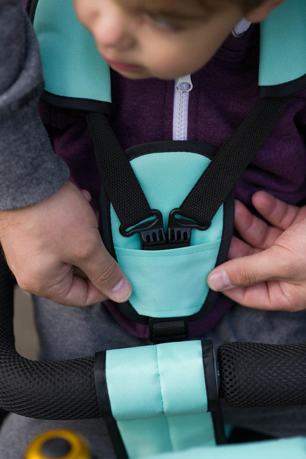 - streha, ki otroka ščiti pred dežjem in soncem, snemljiv zaščitni lok, 3-točkovni varnostni pas
